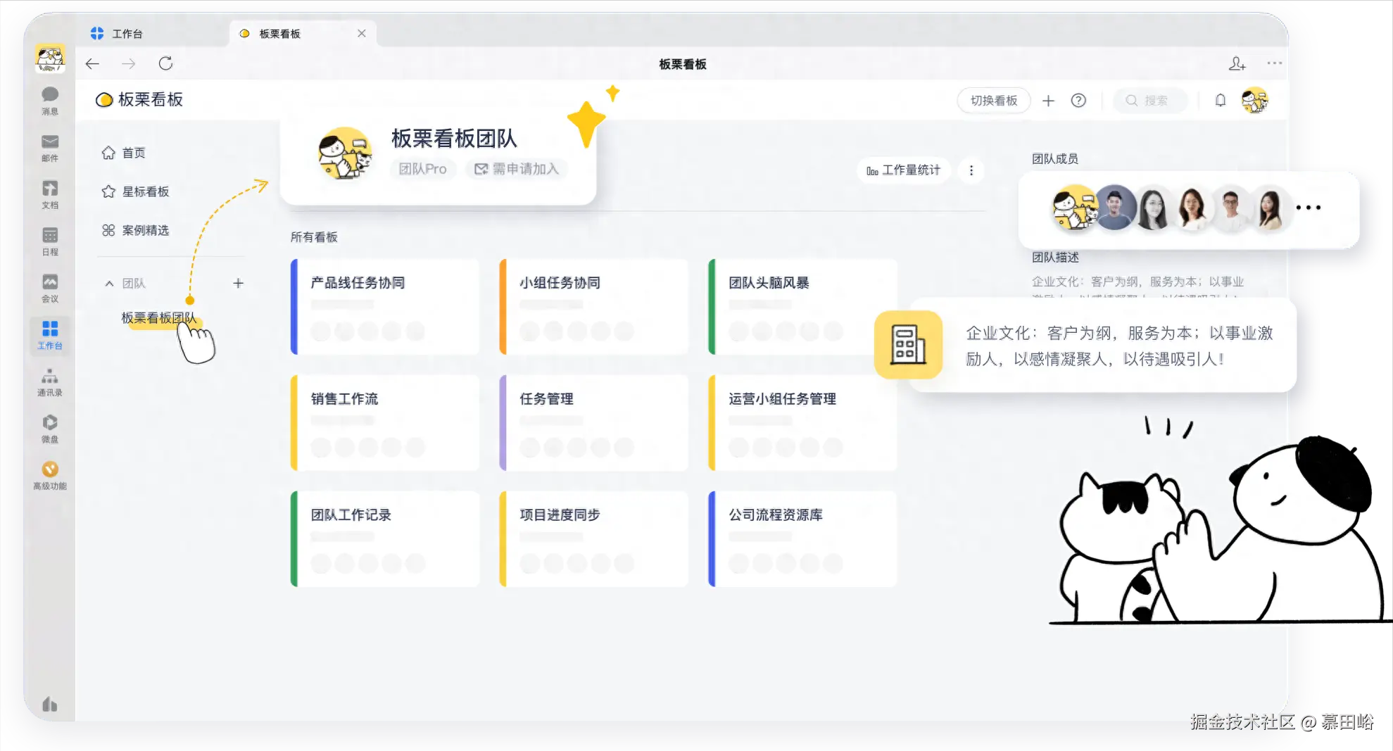 功能概述:板栗看板是一个直观的项目管理工具,采用了看板模式来进行任务分配和追踪,非常适合希望通过“可视化管理”提升项目透明度的团队。