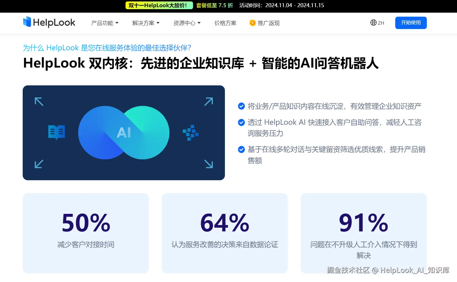 订单处理:AI技术能够实现订单处理流程的自动化,帮助电商企业提高订单处理速度和效率。HelpLook AI知识库内置的AI问答机器人和智能搜索服务,能够即时响应用户需求,处理订单查询问题,缩短响应时间,提高用户满意度。