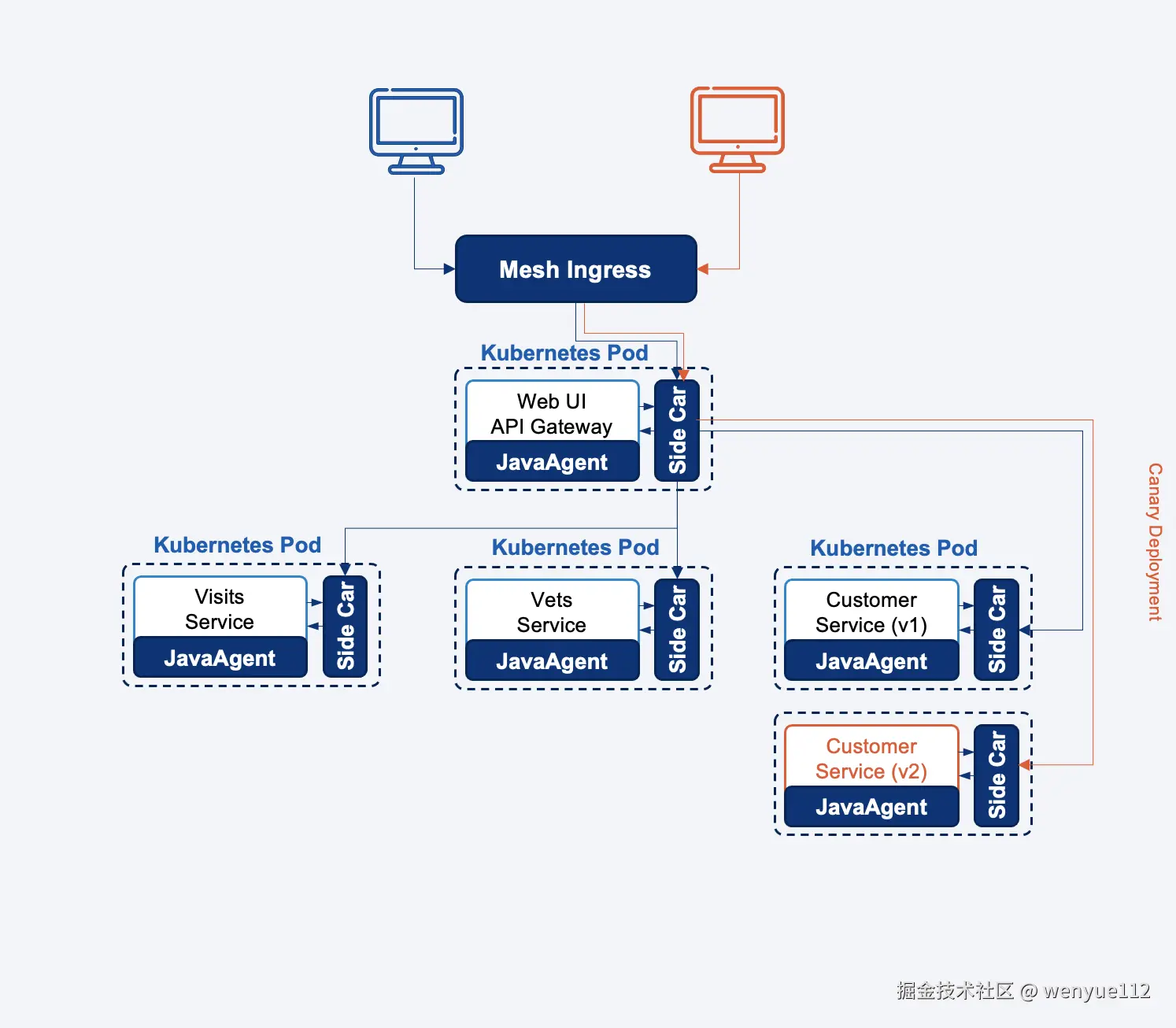 因此,我们决定开发一种新型的服务网格,它可以由 Kubernetes 编排,但可以与 Spring Cloud 完全兼容。换句话说,Spring Cloud 应用可以丝滑地迁移到服务网格。