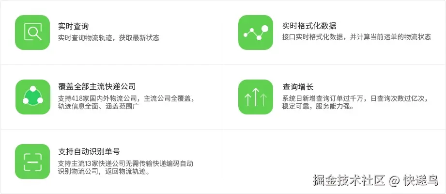 快递鸟快递查询API,供小程序、APP、需实时返回物流轨迹信息即查即走,快递查询将提供输入运单编号立即获取物流最新轨迹,无需快递编码,自动识别物流公司,返回物流轨迹。
