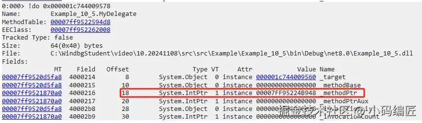 internal IntPtr _methodPtr;//实例方法的入口,看到IntPtr关键字就知道要与非托管堆交互,必然就是函数指针了,