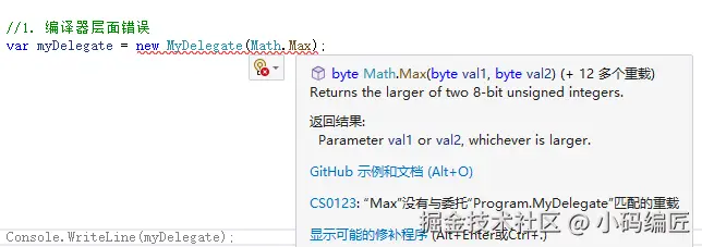 //var myDelegate = new MyDelegate(Math.Max);