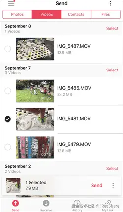 第2步: 打开应用程序,然后选择您要发送的数据。然后在OPPO点击“发送”,您将获得一个6位数字的密钥。