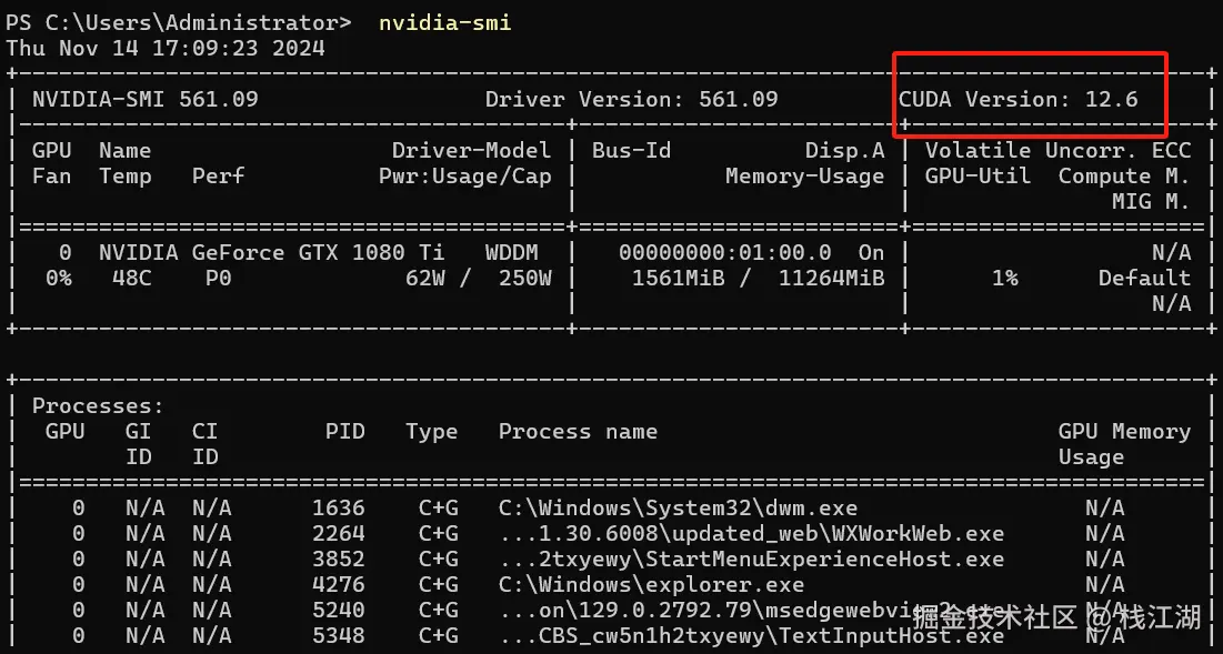 这里支持的 CUDA<=12.6 就可以