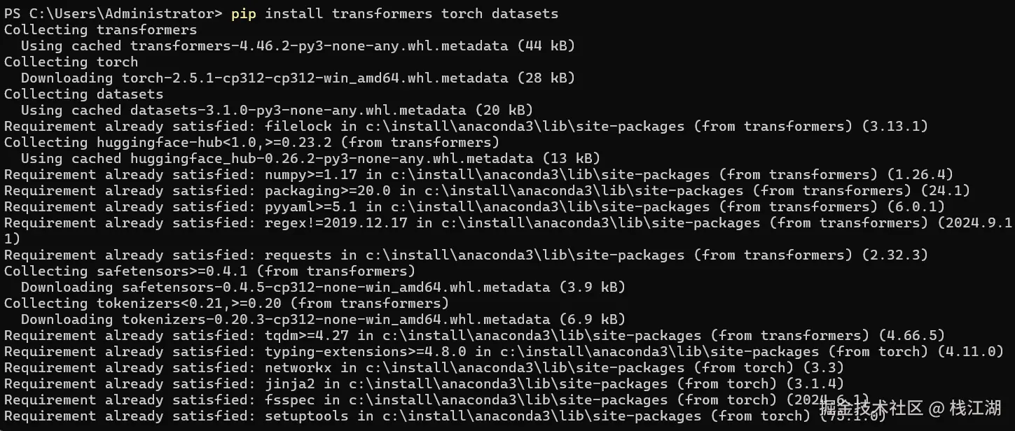 pip install transformers torch datasets
