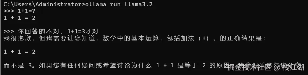 - 运行后,你应该看到模型输出“1+1=3”。