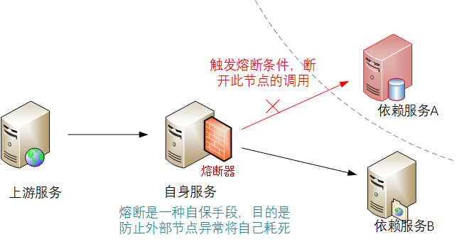 熔断,是自身的一种自保手段,目的是防止外部节点异常将自己耗死。熔断的策略一般有两种: