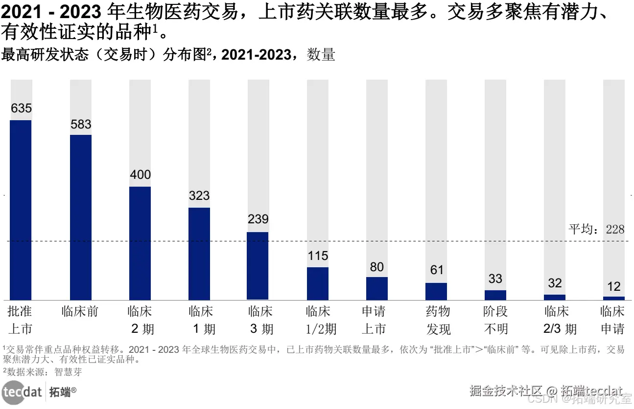2021 - 2023 年全球生物医药交易呈现出以已上市药物为主导,同时注重有潜力、有效性已证实品种的特点。这为投资者、企业和研究机构在未来的决策中提供了重要的参考依据。