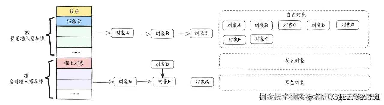 _GCoff,初始化清理状态并关闭写屏障(Write Barrier) - 恢复用户程序的正常执行,从此时开始所有新创建的对象会标记成白色