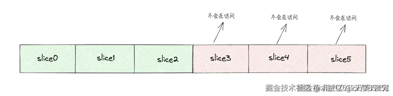 当slice发生缩小,大小缩为原来的一半,只有三个元素的时候,底层数组的3两个元素已经无法再访问了
