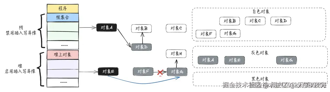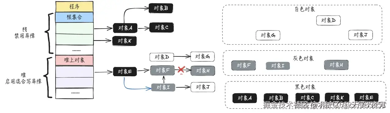 混合写屏障 = 删除写屏障 + 插入写屏障