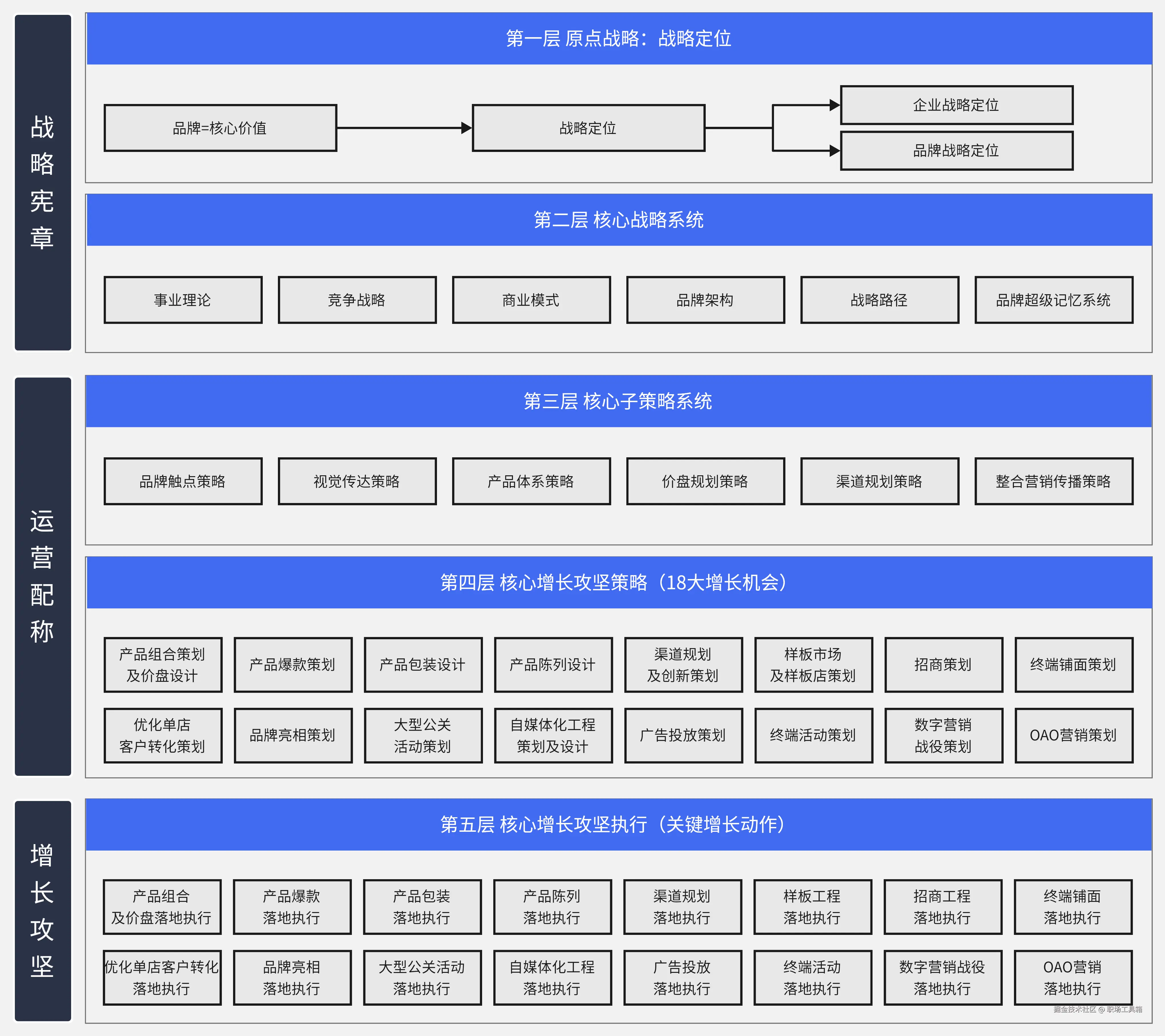 战略三层体系框图是战略规划中常用的框架,它将战略划分为三个不同的层次,提供了一个指导决策和行动的框架。这个模板通过明确战略目标、方向和举措,促进组织内部各部门之间的对齐,使它们能够共同朝着相同的目标努力。战略三层体系框图为评估绩效提供了一个参考框架,组织可以根据实际执行情况对战略目标的实现情况进行评估,并相应地调整战略方向和举措。