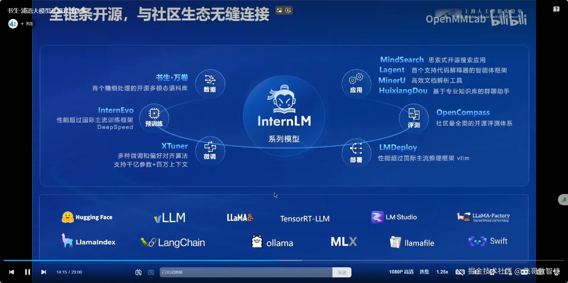 书生·浦语的全链条开源体系不仅涵盖了模型的各个方面,还与社区生态紧密相连。通过开源社区的支持和贡献,书生·浦语不断完善和发展,形成了一个开放、活跃的生态系统。无论是新手开发者还是资深研究者,都可以在这个生态系统中找到适合自己需求的工具和资源,共同推动大模型技术的发展和应用。