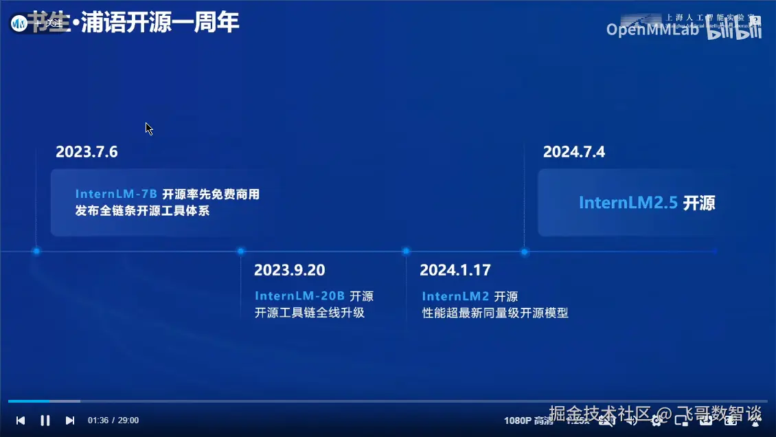 过去一年,书生·浦语在开源社区中取得了显著的进展。从最初的模型发布到现在的全链条开源,书生·浦语不仅在技术上不断进步,还在社区建设上取得了重大突破。这一年的时间里,书生·浦语发布了多个版本的模型,每个版本都在性能和功能上有所提升,为开发者提供了更多的选择和灵活性。