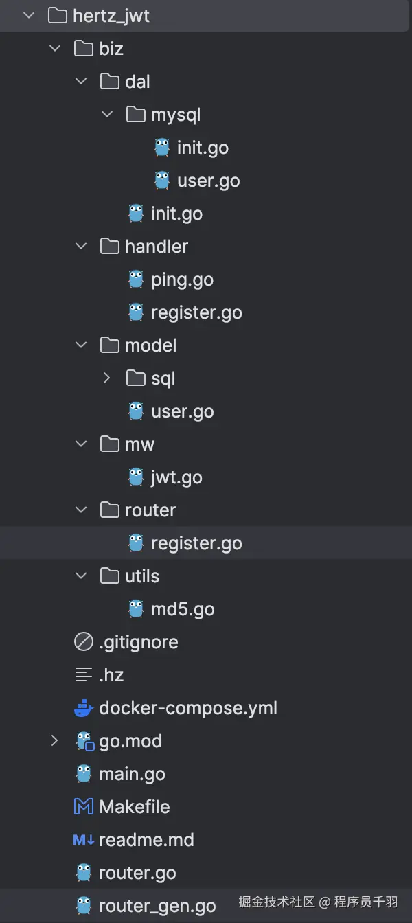 以下是 Hertz 项目的基本目录结构,展示了如何集成 JWT: