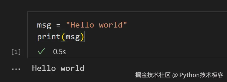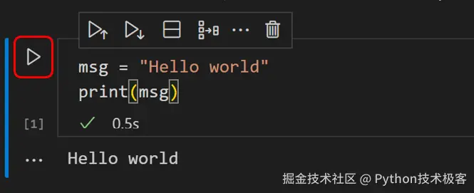 添加代码后,您可以使用单元格左侧的运行图标运行单元格,输出将显示在代码单元格下方。