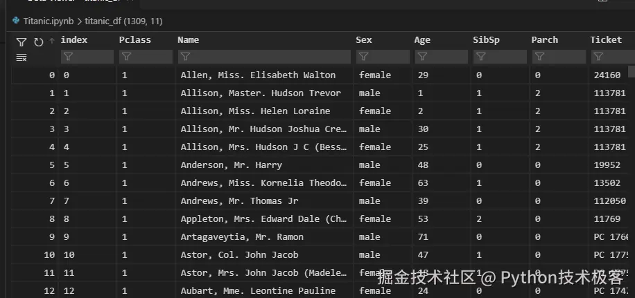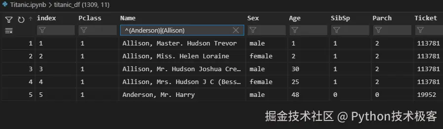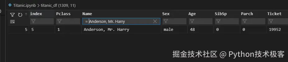 可以通过在每列顶部的文本框中键入内容来过滤数据查看器中的行。输入要搜索的字符串,将找到该列中包含该字符串的任何行: