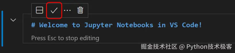 要渲染 Markdown 单元格,您可以选择单元格工具栏中的复选标记,或使用键盘快捷键 Ctrl+Enter 和Shift+Enter。