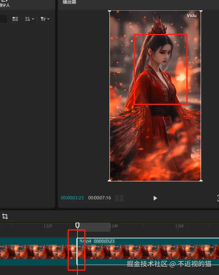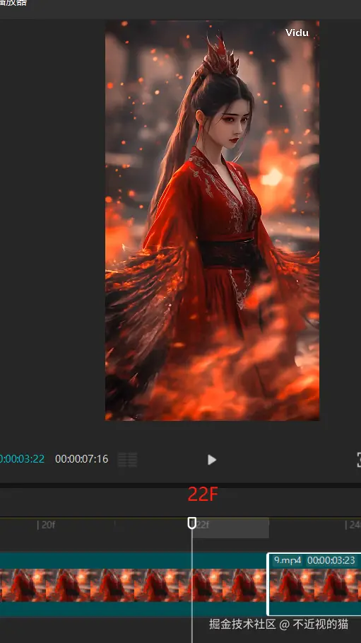 就会发现,他们是会有色彩差异,部分生成的视频会更明显。不过稍微思考下,也很容易理解为什么出现这种情况,就是因为我们使用的是收尾帧的效果,AI在制作视频的时候,会强制将这两帧作为视频最前和最后的关键帧,然后中间部分的帧就是由AI生成的,而目前AI技术还未那么完善,自然画质无法保证完全一致,当然就会出现这种问题。这时,我们就要考虑这个效果能不能接受,不能接受就得考虑删除这连接处相关的帧。