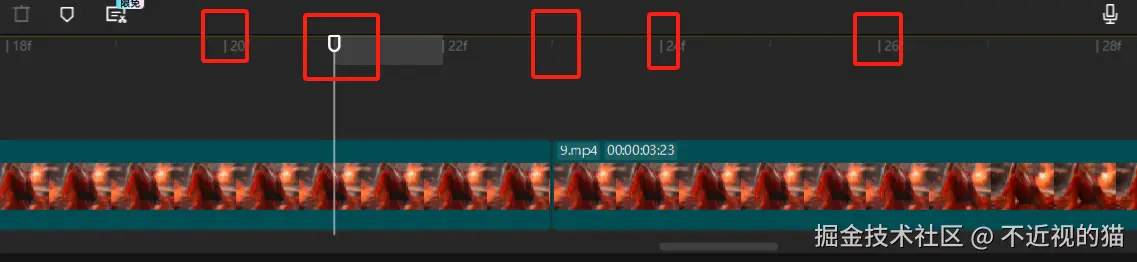 首先,我们先把视频效果导入剪映,并且放大视频轴,就能看到每一帧的效果了,就像这样: