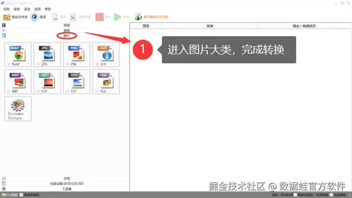 图片转换方法2:数据 蛙视频转换器