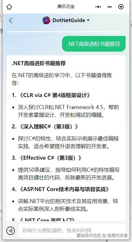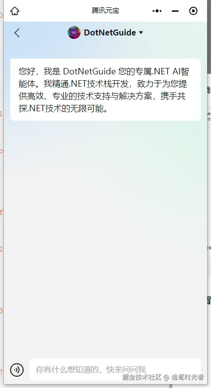您好,我是 DotNetGuide 您的专属.NET AI智能体。我精通.NET技术栈开发,致力于为您提供高效、专业的技术支持与解决方案,携手共探.NET技术的无限可能。