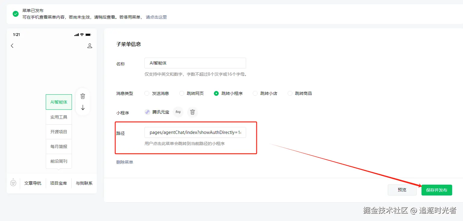 复制腾讯元器的小程序路径 (path):
