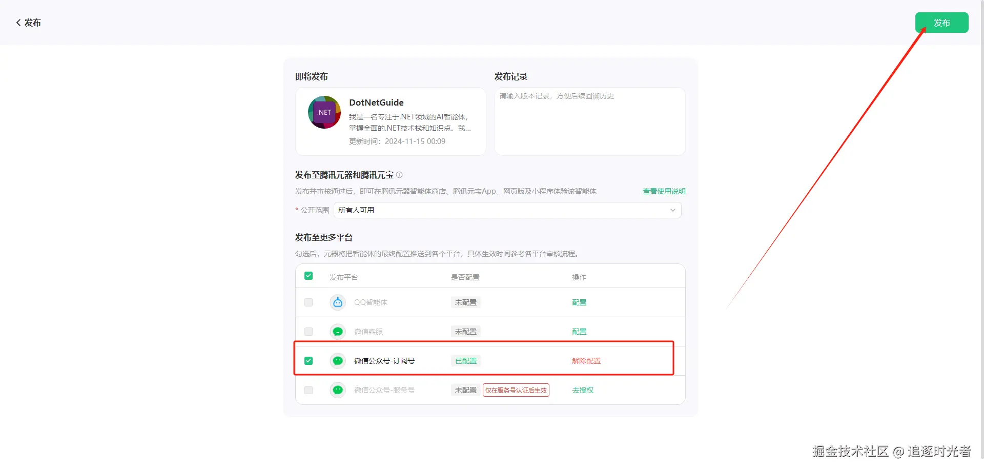发布智能体