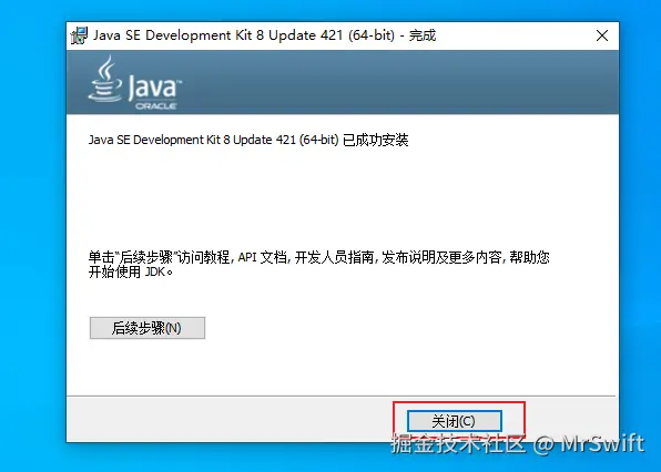 - 点"关闭",结束安装