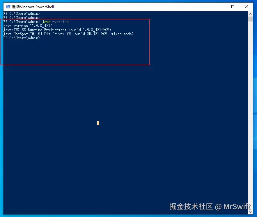 - 输入 java -version ,按回车键