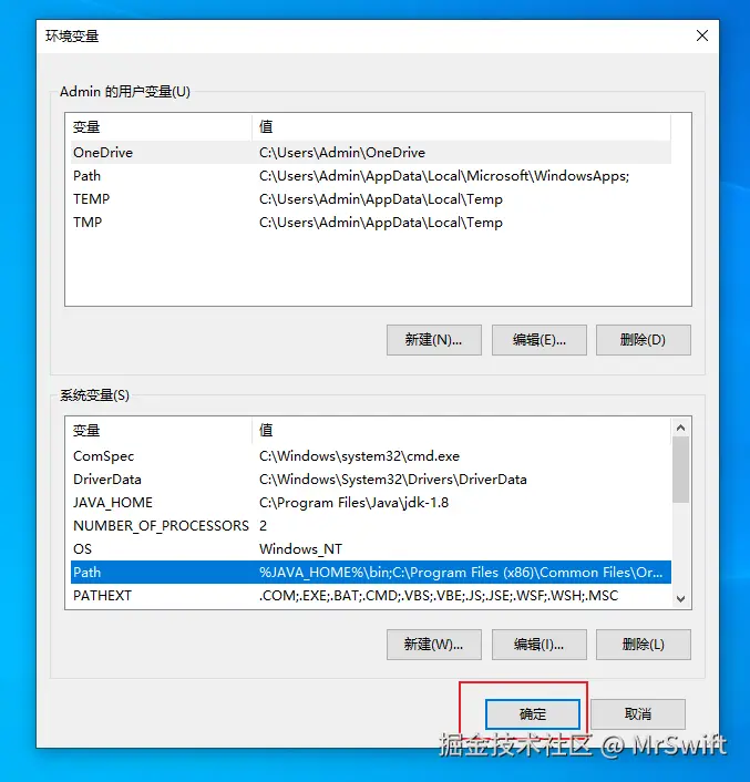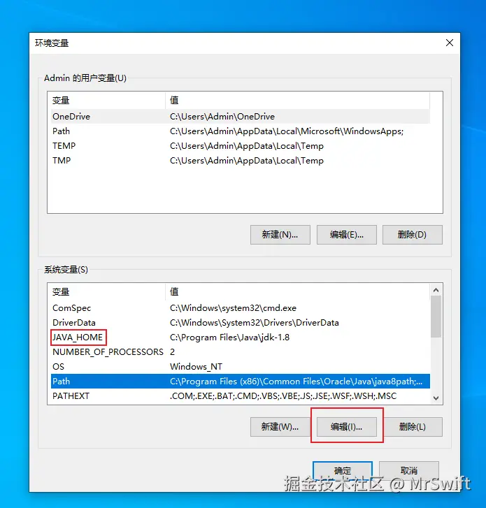 - 之后会在列表中看到"JAVA_HOME"的环境变量,然后单击选中"Path",点击"编辑"