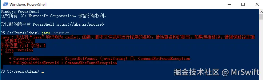 - 如果出现上述的红色内容,说明jdk环境没有安装