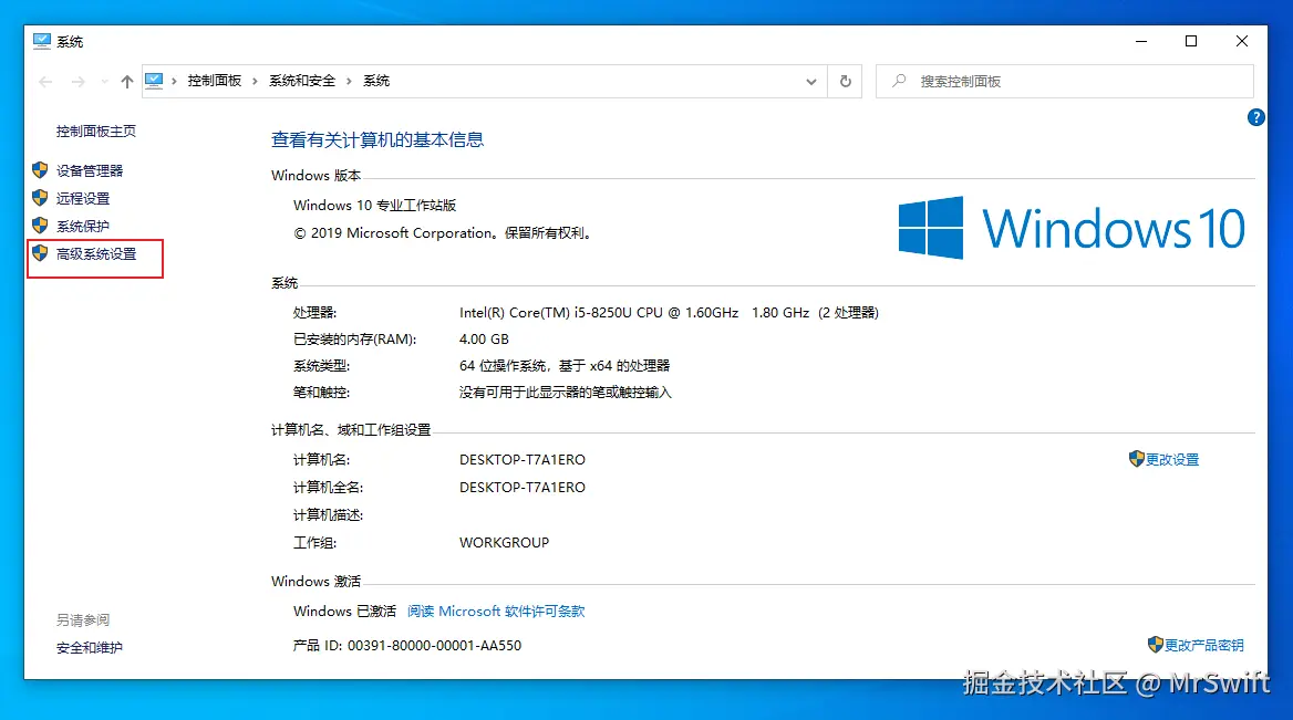 - 下面开始配置环境变量,右键此电脑---属性,点击"高级系统设置"