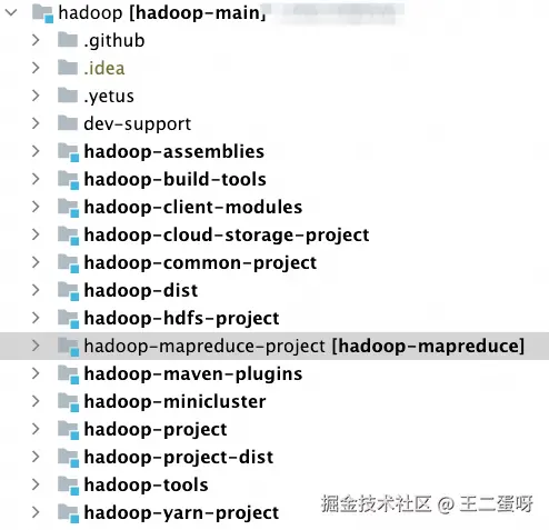 如上图,Hadoop 其实就是一个用 Java 编写的项目,包含了 HDFS、MapReduce 以及 Yarn 这几个核心组件。本文重点介绍 HDFS 和 MapReduce,Yarn 作为资源调度组件,本文就不重点说明了。
