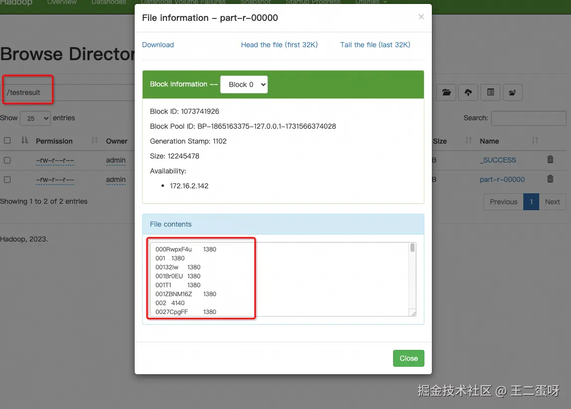 MapReduce 任务执行完成后,在 hdfs 的 web ui 界面就可以看到计算结果。