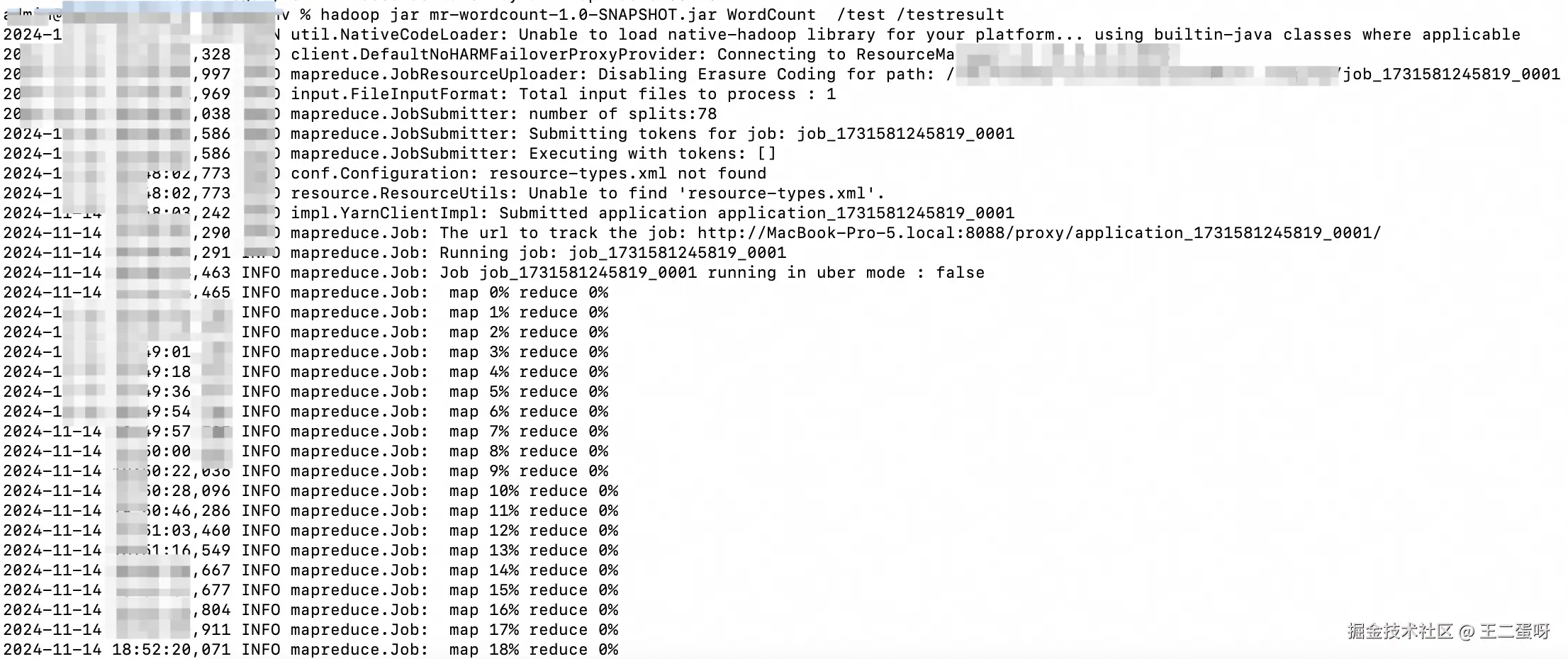 hadoop jar mr-wordcount-1.0-SNAPSHOT.jar WordCount /test /testresult