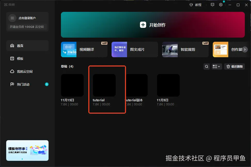 天天乐剪完成之后,我们再次打开剪映,我们发现已经有了一个新的草稿,这个草稿就是我们刚刚用软件自动创建的。