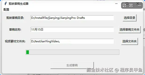 我们选择完成之后,点击生成草稿按钮,就开始自动化生成剪映草稿了,等待它的完成。