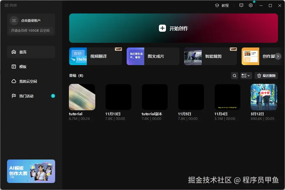 素材和空白草稿准备完成之后,我们就要自动生成剪映草稿了。我们不用手动去剪映添加素材,我找到一个非常完美的软件,完全解放双手,自动化完成剪映草稿的生成。它就是天天乐剪。