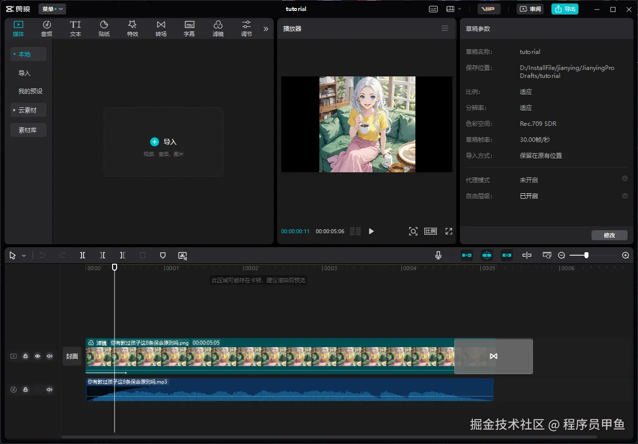 我的图片和音频的素材是tutorial文件夹下面: