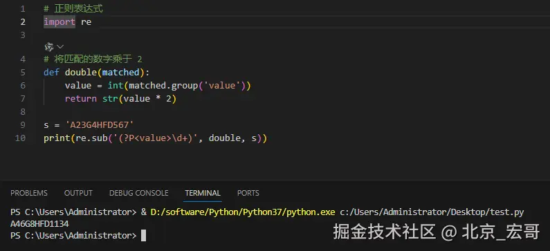 关于这个字符串通过正则提取关键字,正则的这个概念宏哥就在这里赘述一下或许不是很全面,,有兴趣的可以自己查一下。但是宏哥上边说的测试场景就需要用到这一操作(re.sub)。