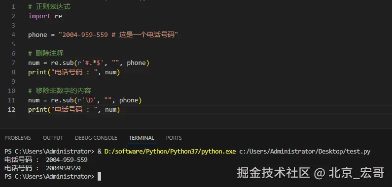 好了,关于字符串的操作,宏哥就介绍到这里,其实两种方法各有千秋,如果其中一种不太合适或者不好用,不妨换另一种方法试一下,没准就成功了。不要钻牛角尖,一条道走到黑哈。还有就是正则表达式的语法,自己去查一下,看一下,半个小时就可以掌握的差不多了,然后要注意实践啊,不然吃一顿饭就忘记了。