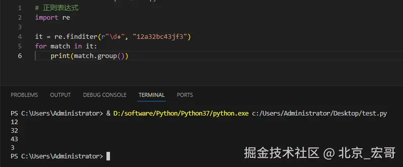 需要特别指出的是,正则匹配默认是贪婪匹配,也就是匹配尽可能多的字符。举例如下,匹配出数字后面的0: