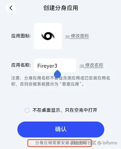 - 空壳的分身应用是需要用户手动安装,对于在意安装操作繁琐的用户,不建议使用。