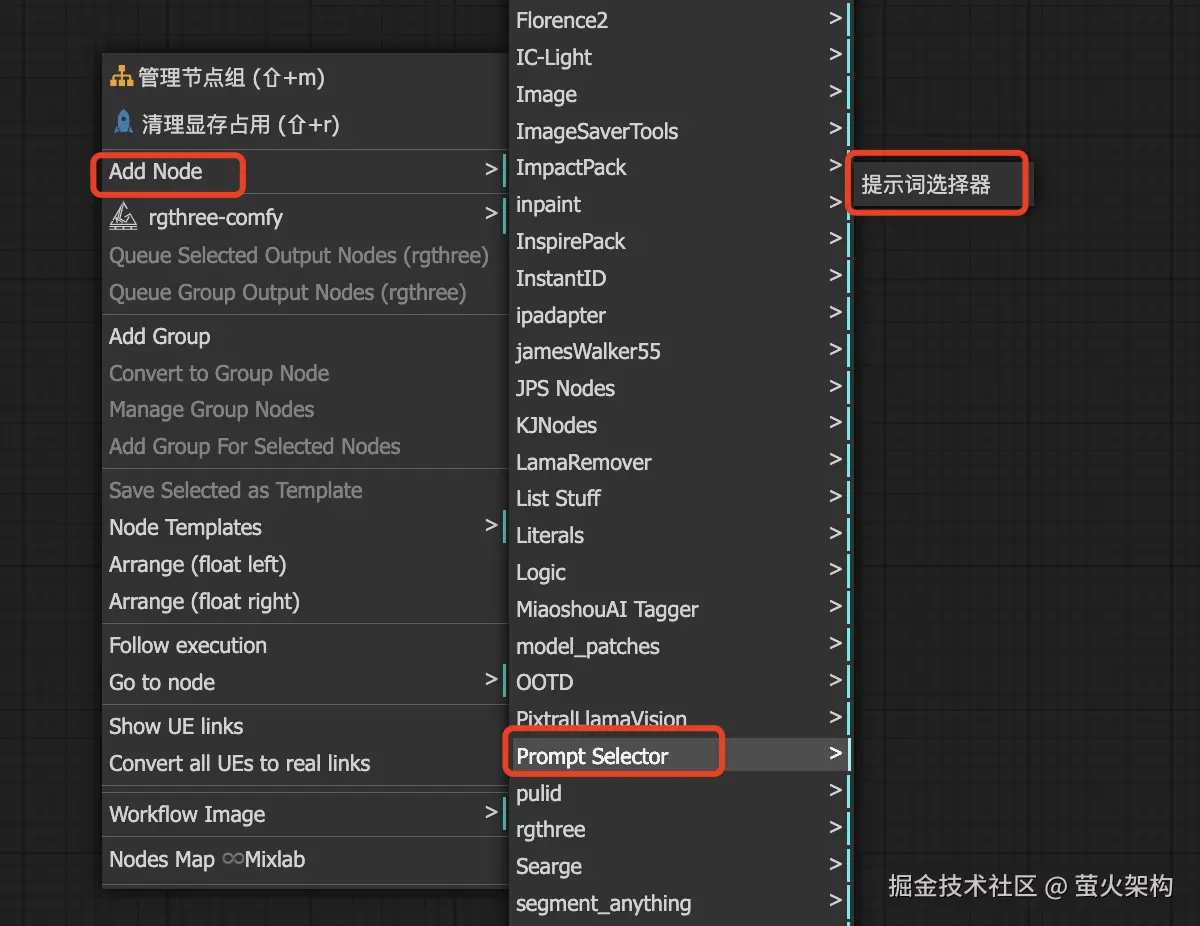 对于喜欢技术开发的同学,如果想进入这一领域,应该尽快行动起来,早占先机。这篇文章将给大家介绍开发ComfyUI插件的基本方法,具体将以我开发的提示词选择插件为例进行讲解,在ComfyUI中插件就是自定义节点(custom nodes)。