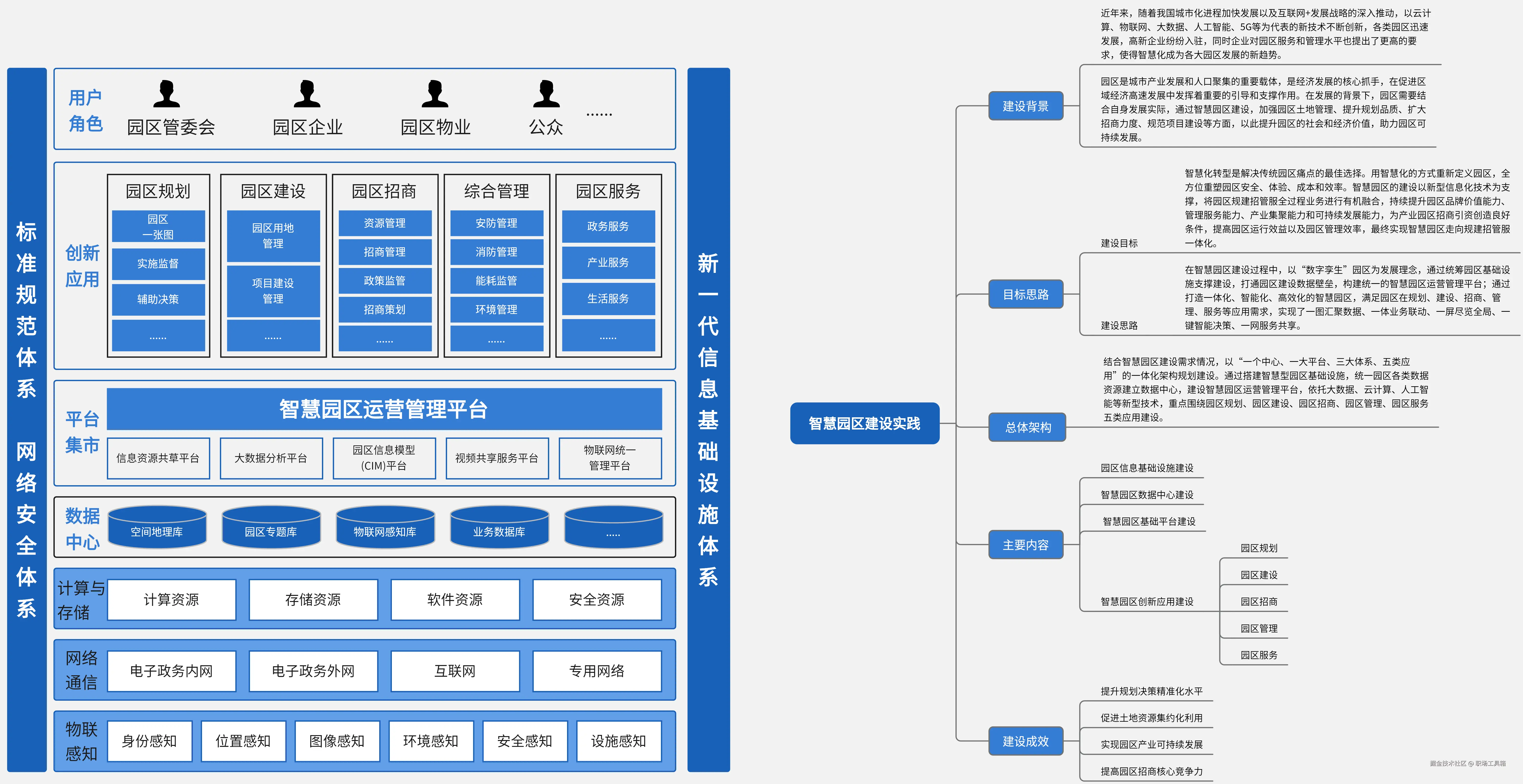 智慧园区建设架构是由多个子系统构成的互联互通的整体系统,主要由感知层、网络层、数据平台层、应用服务层、展示层五个层级构成。这幅架构图作为一种沟通工具,帮助不同领域的团队成员之间更好地交流和协作。智慧园区的架构图通常会包括各种子系统,如物联网设备、云服务、大数据分析、安全系统等,以及它们之间的相互作用,提供一个直观的、高层次的概览。