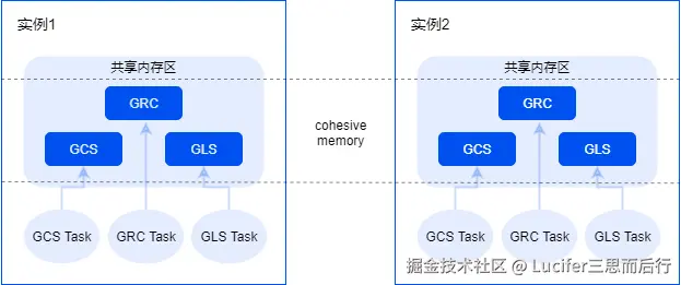 - GLS(Global Lock Service):负责管理非数据块类全局资源的调度,主要是各种类型的锁,GLS 在 GRC 提供的能力基础上实现实例之间申请全局锁的完整流程,由 GLS 线程组提供相应的服务。
