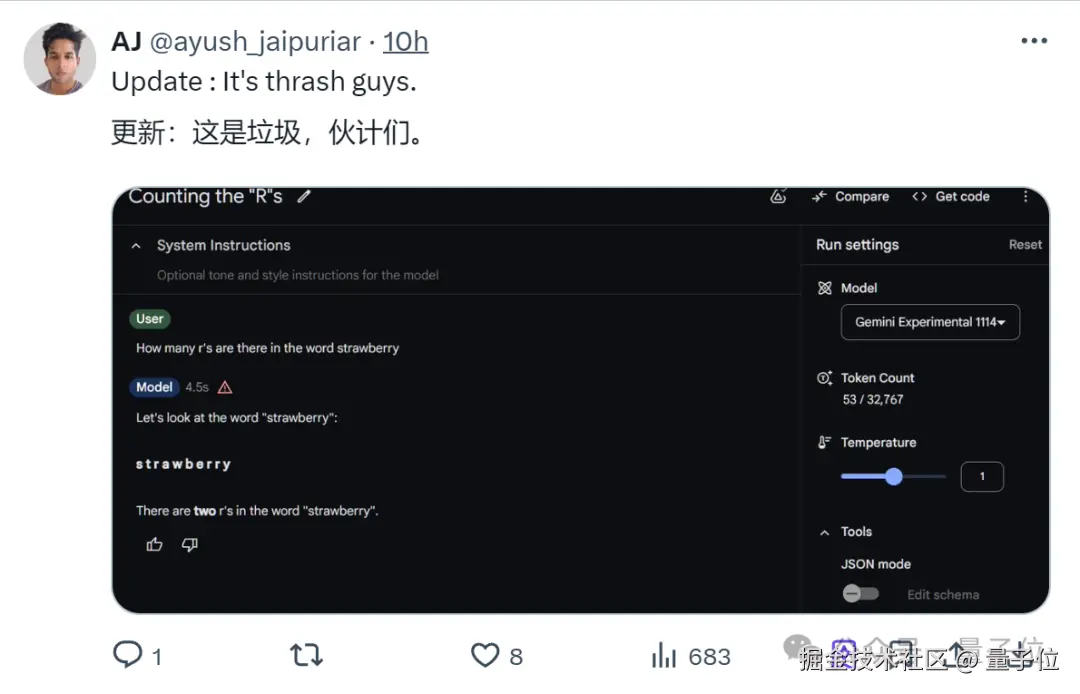 透过其中一位小哥的观察,Gemini-Exp-1114 这次也是用上了思维链,在回答时也能像人类一样一步步思考了。