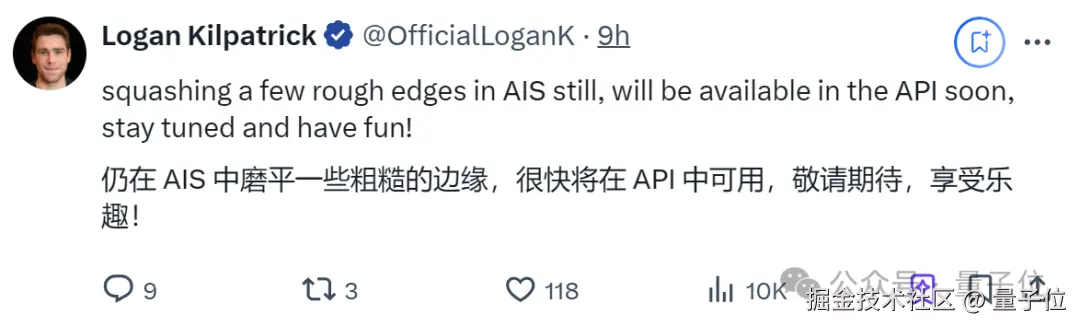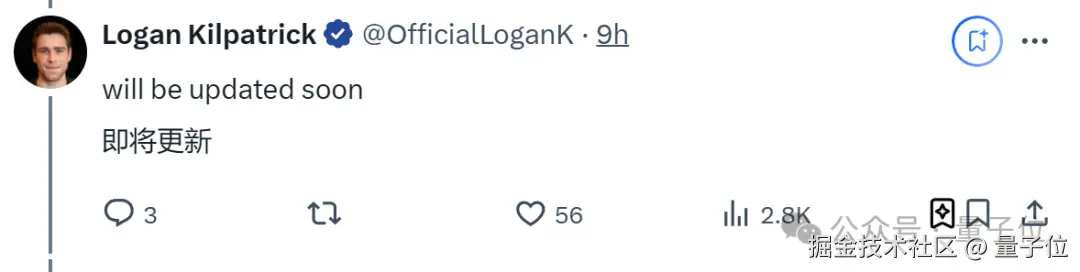 兴许是感受到大家的怨怼了,谷歌 AI Studio 负责人赶紧出来打圆场:马上更!马上更!