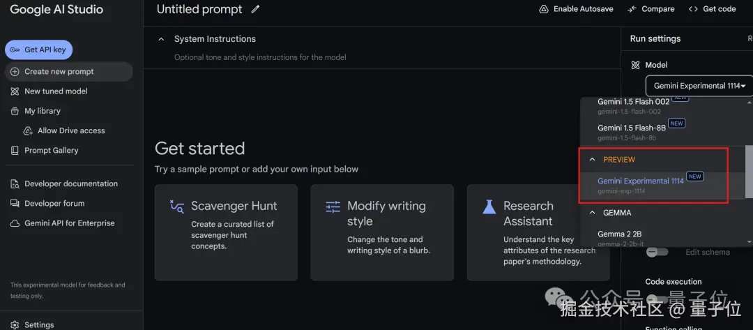 目前,Gemini-Exp-1114 已经可以在谷歌 AI Studio 体验,且官方计划后续提供 API。